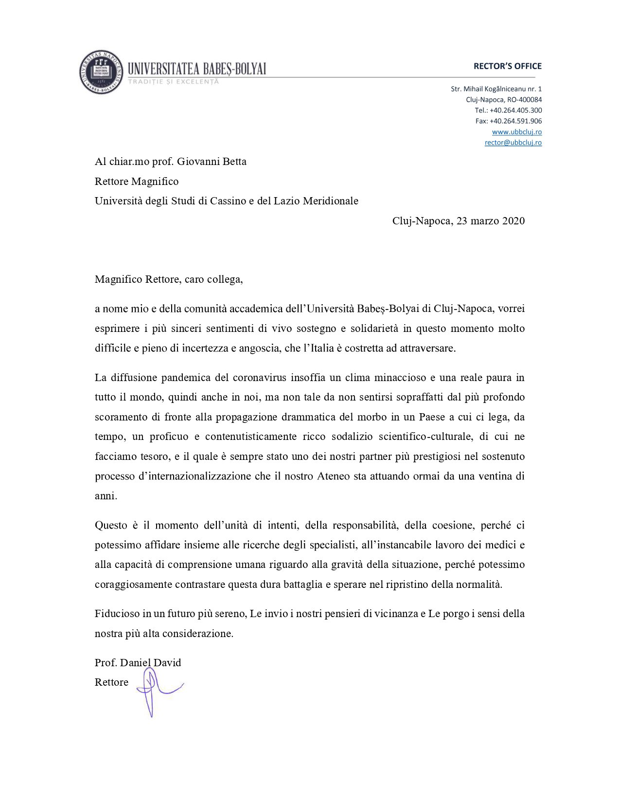 45 lettera rettore fac simile